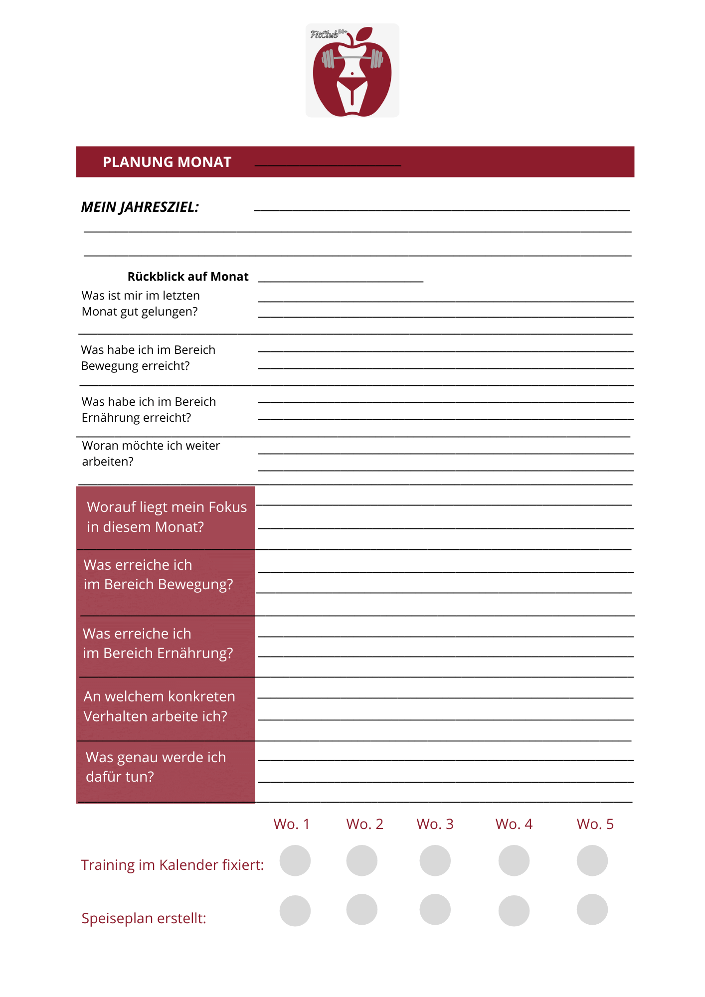 Du bekommst einen Planer für den Monat, die Woche und den Tag - mit spezifischen Fragen und Anregungen.